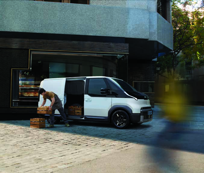 PV5의 외관 디자인은 모던하면서도 실용성이 뛰어난 형태로, 짧은 본닛과 박스형 구조가 특징입니다. 슬라이딩 도어로 인해 편리한 승하차가 가능합니다.