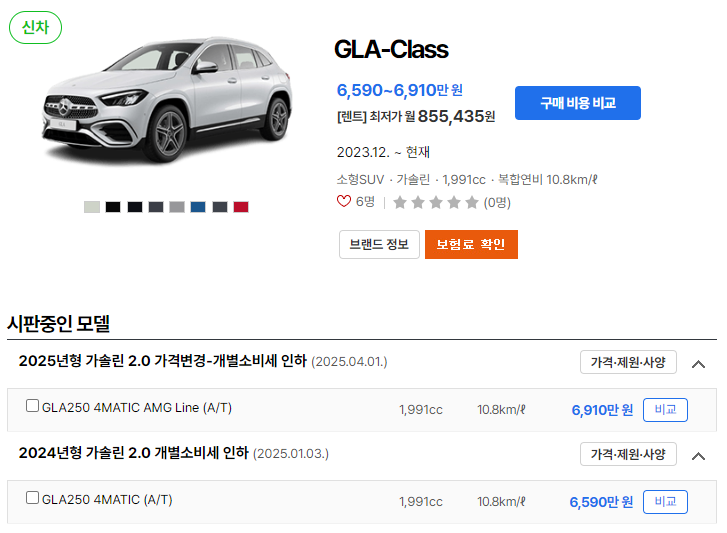 2025 벤츠 GLA의 가격은 6,790만 원부터 6,860만 원까지 다양합니다.