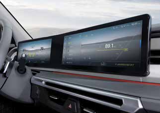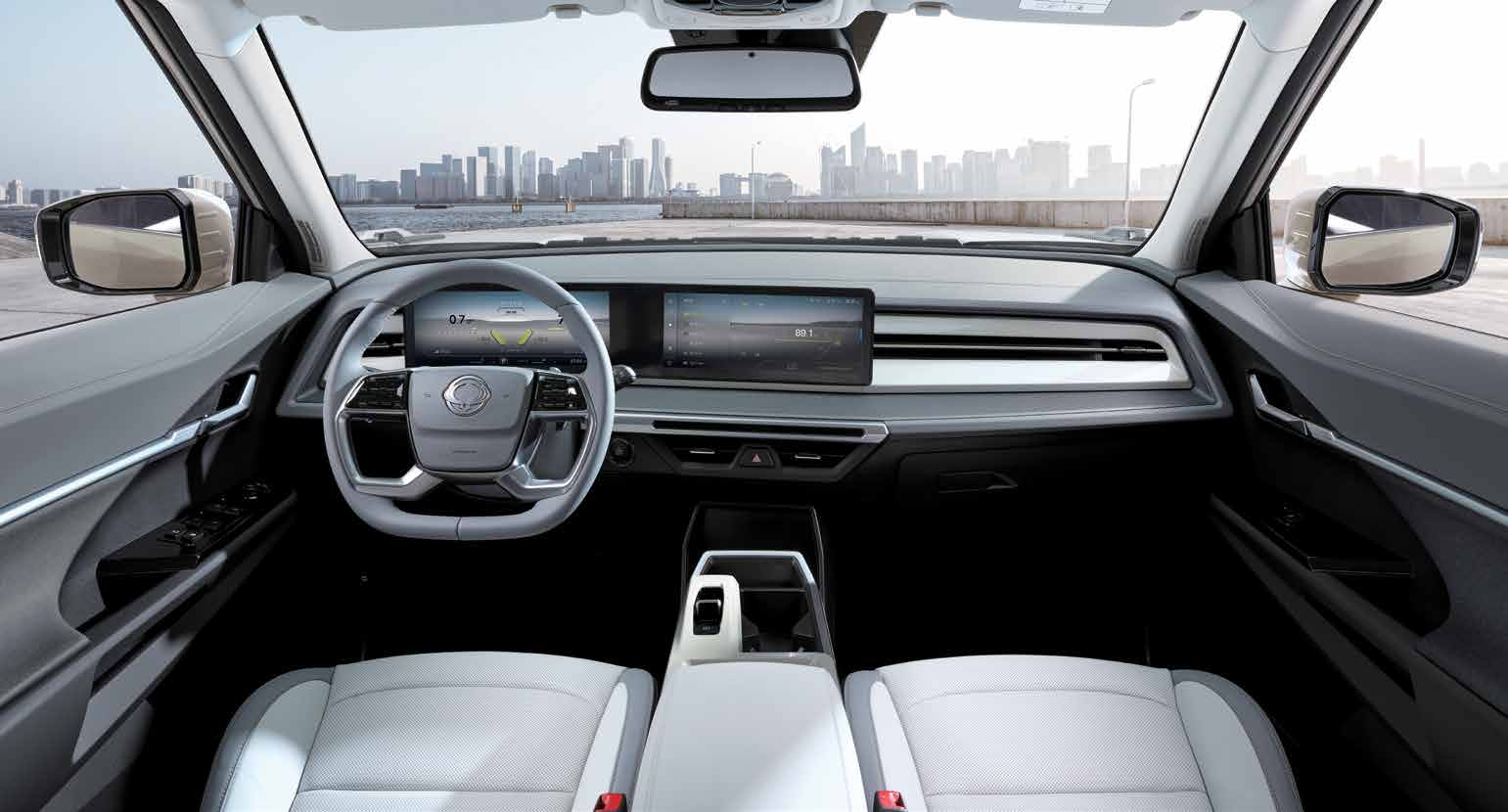 차량 내부는 넓고 편안한 공간을 제공합니다. 고급스러운 소재로 마감된 인테리어는 기류 효율성과 소음을 줄이도록 설계되었습니다. 중앙에 위치한 인포테인먼트 시스템은 다양한 기능을 지원하며, 운전자가 편리하게 조작할 수 있도록 배치되어 있습니다.