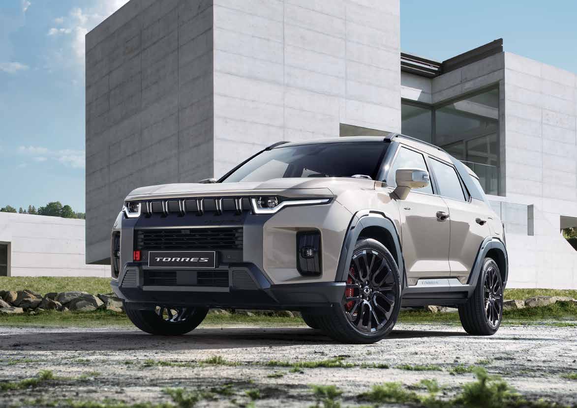 2025 토레스 하이브리드는 현대적이고 강인한 디자인을 채택하고 있습니다. 차량의 전면부는 날카로운 헤드램프와 대형 그릴이 조화를 이루어 세련된 인상을 주며, 스포티한 주행성을 강조하고 있습니다.