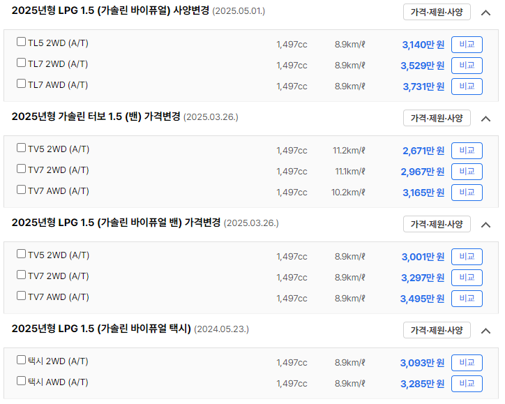 2025 토레스 하이브리드의 인기 차종은 T7 2WD 모델로, 사용자가 많이 선호하는 옵션입니다.
