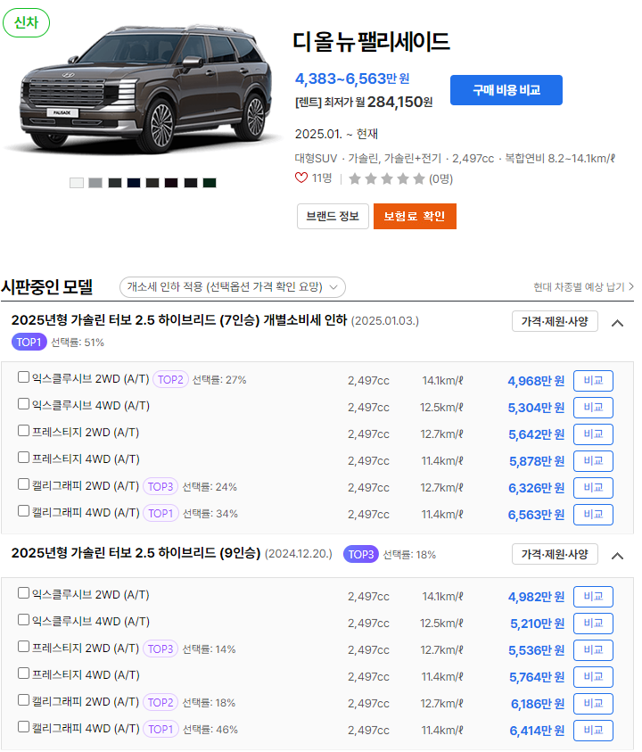 2025 팰리세이드 가격