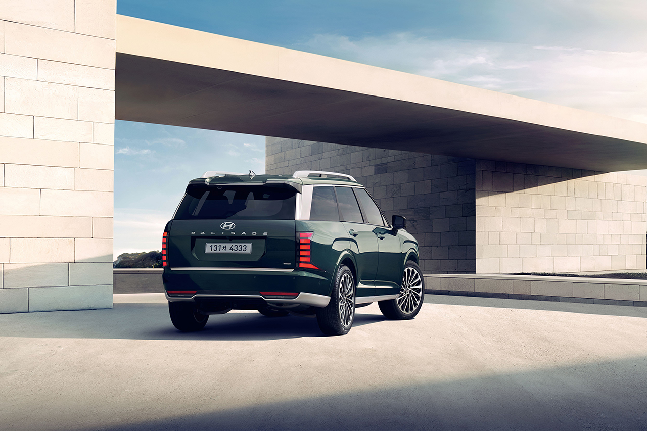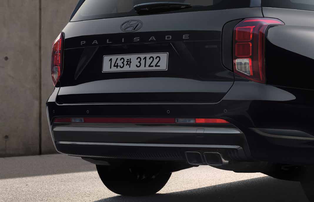 2025 팰리세이드는 고유의 그릴 디자인과 스포티한 라인을 강조하여 단순함과 강인함을 동시에 표현합니다. 세련된 LED 헤드라이트와 슬림한 테일램프가 차량의 고급스러움을 더욱 강조합니다.
